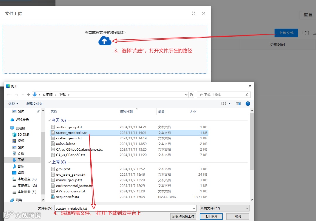 3. 在弹出的对话框中选择准备好的文件,上传完成后会在该页面上方显示上传成功;