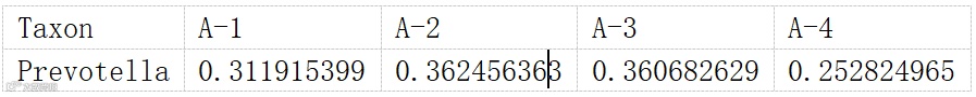 输入文件1格式如下,第一行为样本名称,第一列为微生物名称
