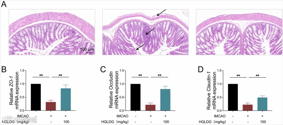 HQLDG可改善tMCAO小鼠肠道屏障损伤