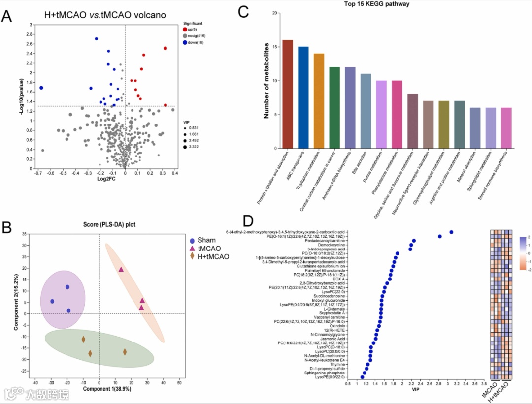 图6 HQLDG调节缺血性脑卒中损伤小鼠非靶向代谢组研究
