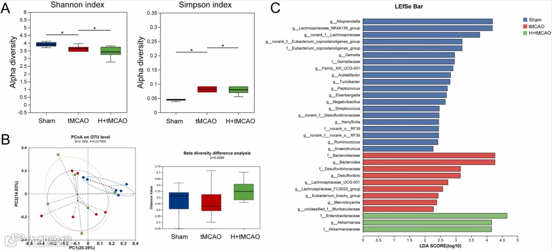 HQLDG可调节tMCAO小鼠体内微生物组成