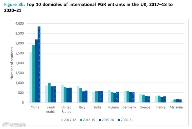 在英读博的国际学生中,中国学生占比最多,尤其在2020/2021学年增速较快,入学人数增长了20.5%,达约3800名学生。