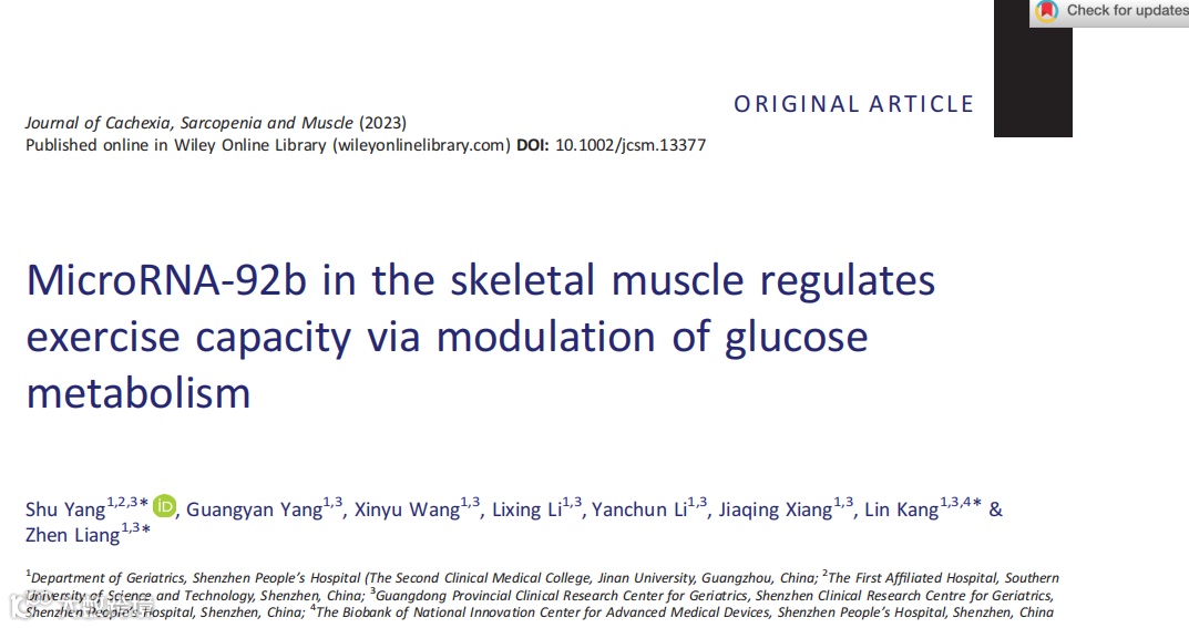 2023年9月25日,深圳市人民医院研究团队在Journal of Cachexia, Sarcopenia and Muscle上联合发表了“MicroRNA-92b in the skeletal muscle regulates exercise capacity via modulation of glucose metabolism”一文(IF=8.9)。在本研究中,作者在小鼠中过表达miR-92b,并对miR-92b小鼠进行敲除,探索miR-92b在骨骼肌糖原和乳酸代谢中的作用。百易汇能生物在本次研究中承担了RNA-seq测序分析工作。