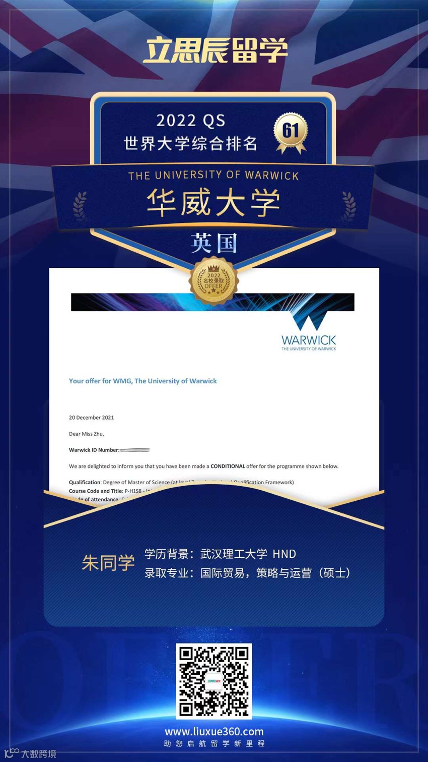 不过,我还是根据学生未来的硕士目标,本科学校专业匹配度,学习难度,考试打分高低等各方面的情况给Z同学做出了较为合理的选择建议。在帮助Z同学选校的时,我花了非常多时间,一个个去跟学校确认,去核实申请资格。最终,我们终于拿到了QS排名61的华威大学和QS排名92的利兹大学的录取。结果还是很令人满意的,算是一次逆袭。