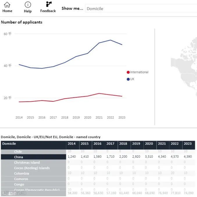 中国一直是除英国外申请人数最多的国家,今年申请总数仍超过4,000,说明中国申请者对英国名校的需求依旧强劲。