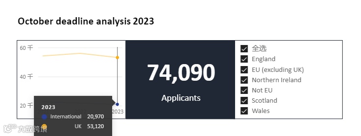 UCAS官网(英国大学和学院招生服务中心,即英国招生服务机构)近期公布了2023年第一轮英国本科申请数据。