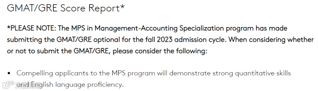 康奈尔商学院下的管理学硕士,申请同样不要求GRE成绩,但是项目也明确提出,缺少标化成绩,招生办会通过其他申请材料来评估学术能力。