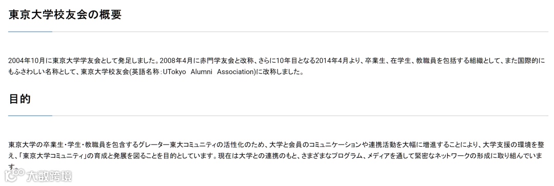 东京大学人才辈出,培养的毕业生活跃在民间企业、政府机关等广泛领域。东大为了加深在校学生及其相关人员、毕业生的联系,成立了东京大学校友会,通过各种各样的节目、媒体,致力于形成紧密的关系网。