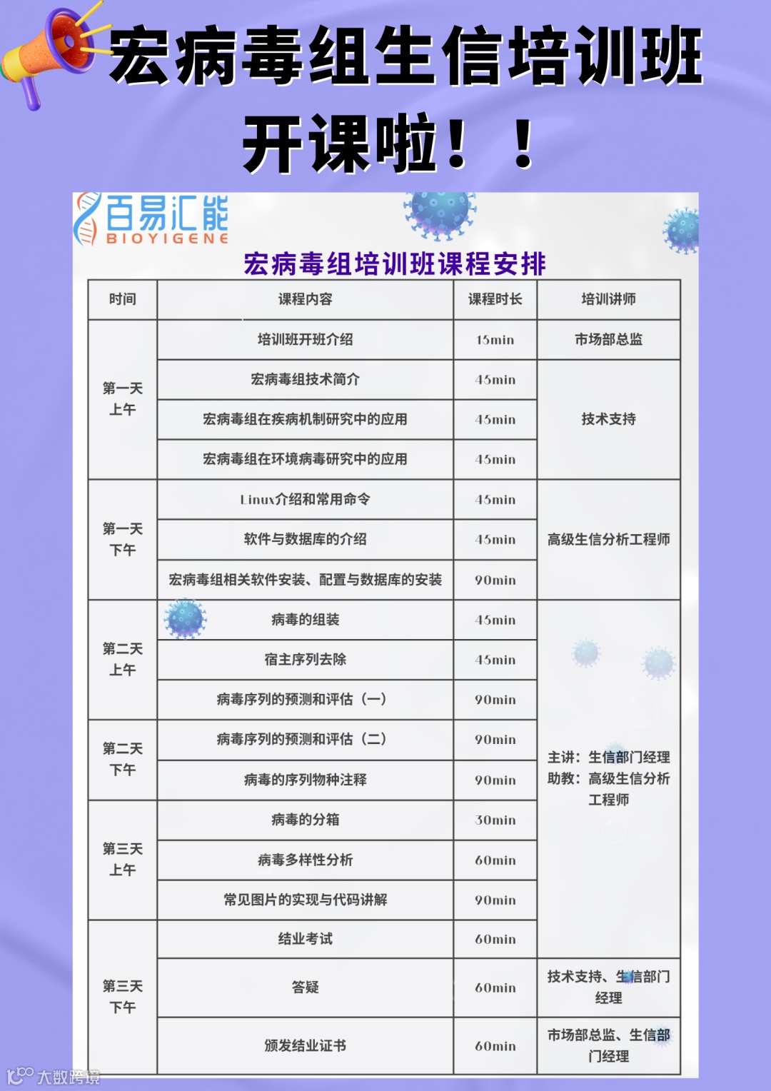 点击链接了解详情:宏病毒组生信培训班火热来袭!