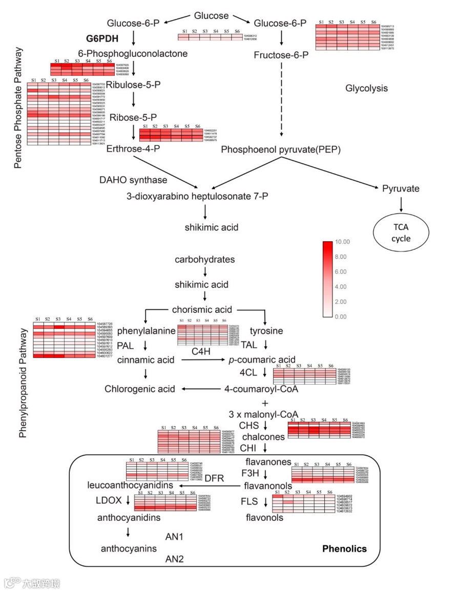 图5 苯酚生物合成相关表达基因的表达模式