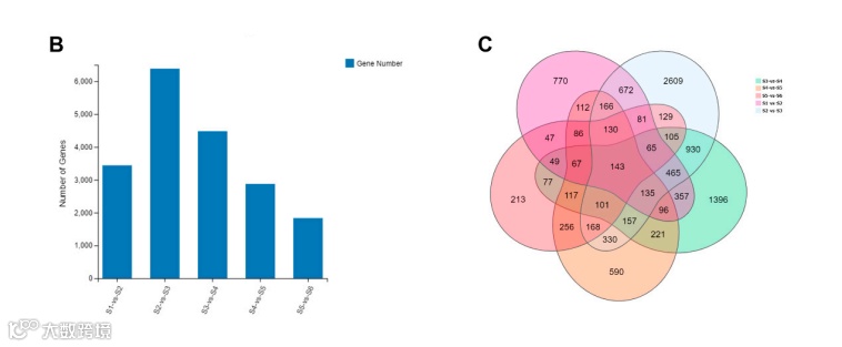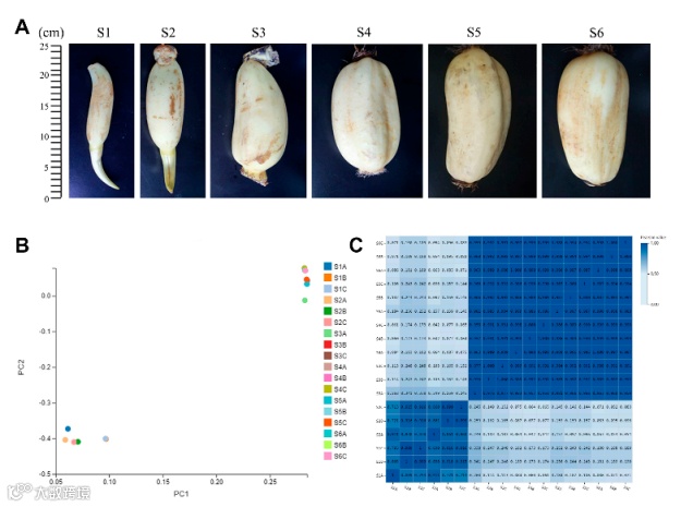转录组测序分析显示样本S1和S2在基因表达和分析上更相似,而S3、S4、S5和S6在基因表达上更相似(图1C)。PCA分析证实了这一结果(图1B)。