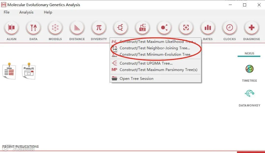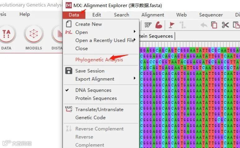 进行系统发育分析时直接点击Data中的Phylogenetic Analysis即可。