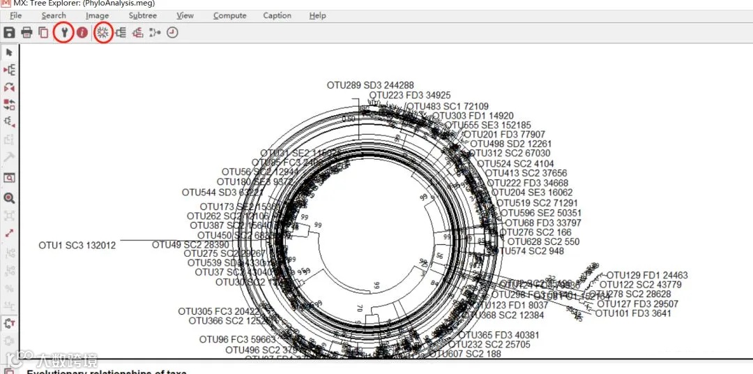 运算时间与数据量有关,运算结束后进化树就生成了(由于小编的数据序列比较大,不是特别美观,各位读者多担待)。