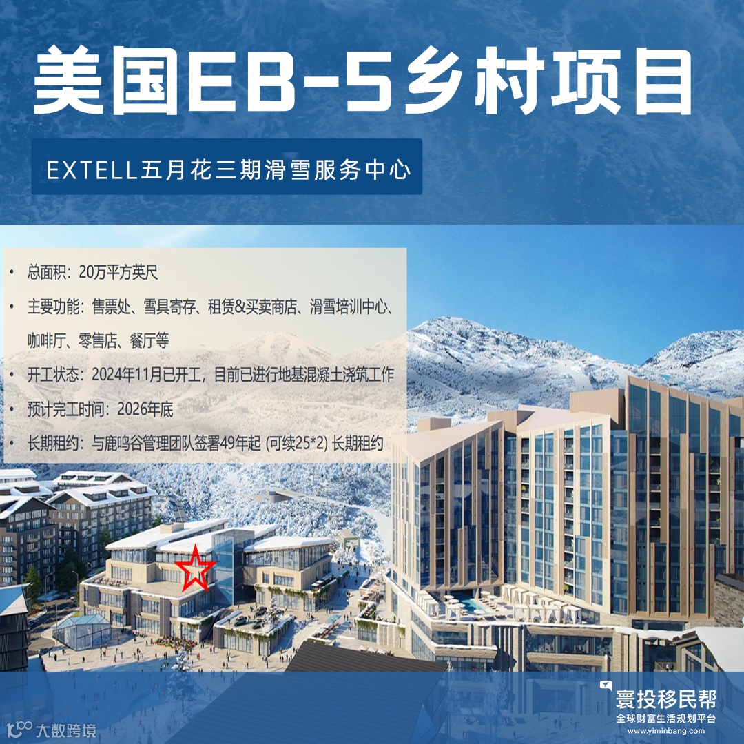移民帮用金融风控的标准筛选项目,为客户严格甄选EB-5投资移民项目,与纽约知名开发商EXTELL携手推出EB-5新政乡村地区项目-五月花三期鹿鸣谷滑雪服务中心