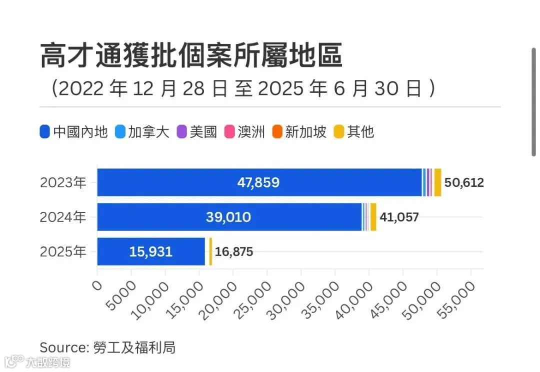 同时本次港府也公布了BC类人才所毕业的院校归属地,大部分人来自内地院校,约占60%(内地院校获批人才为47928宗)。