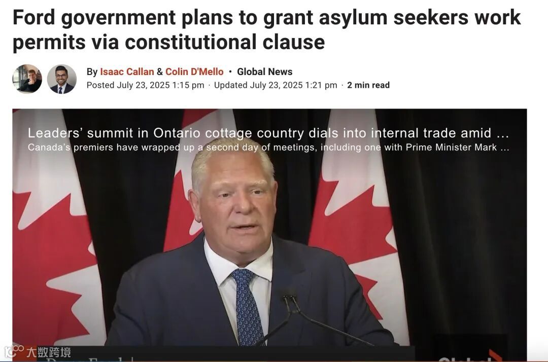 安大略省省长道格·福特在闭幕记者会上公开宣布:“我们将自行发放工作许可。”福特批评联邦移民审批效率低下,致使近10万名庇护申请者滞留酒店、无法就业,既浪费资源也错失劳动力机会。他表示,安省将启动相关立法和机制,依据宪法第95条,为符合条件的申请人发放工作许可,加速其融入劳动力市场。