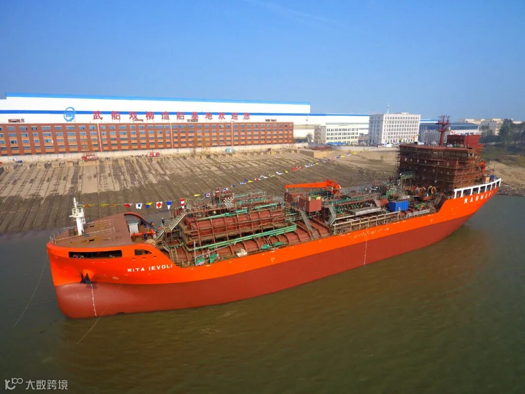 继4000hp两条船下水后,中国船舶武船集团又迎大节点。2020年12月28日上午9时08分,14620DWT不锈钢化学品船顺利下水。