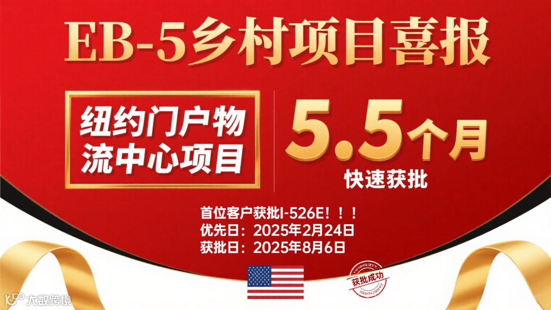 要知道,行业平均审批周期是12-18个月——而纽约门户物流中心项目首位I-526E客户的获批速度快了一大半,可谓神速!