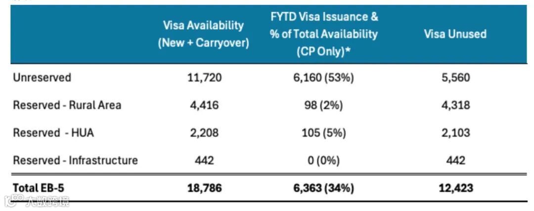 根据统计,截至2025财年2月底,EB-5改革法案下的各类预留签证发放如下(不含通过USCIS身份调整的签证数据):
