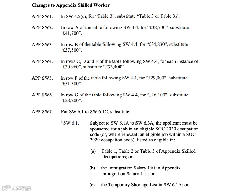 工资门槛上调:标准薪资由£38,700上涨至£41,700,行业“going rate”同步提升。例如软件工程师的年薪要求由£49,400涨至£54,700,申请人需满足标准薪资或going rate中较高的一方。转永居时,也需达到该薪资标准。