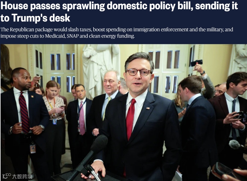 最终,当地时间7月3日,众议院以218票赞成、214票反对通过该法案,特朗普计划于7月4日签署生效。