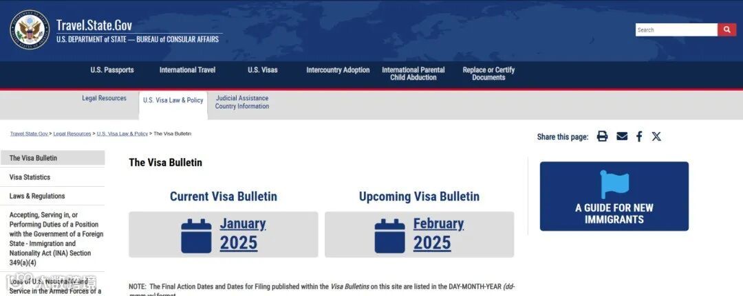 美国国务院签证办公室公布了2025年2月移民排期公告。