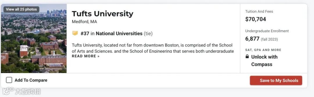 第37名 波士顿学院 (并列) 塔夫茨大学