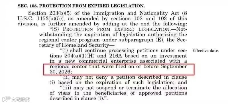 EB-5新政不是永久法案,2026年9月30日为截止日期,但新政有祖父条款保护。也就意味着,在2026年9月30日之前递交的I-526E申请的投资人,即使将来法案有变动或停摆,已递交的申请不受任何变动影响,移民局仍按现有政策审理原有申请,继续EB-5移民流程。