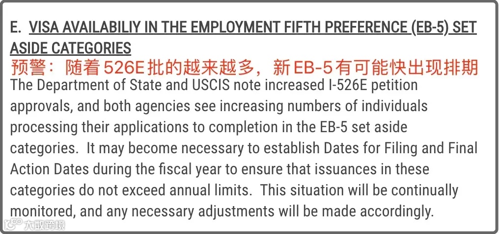 在2025年1月发布的签证公告中,美国移民局首次发出“预留签证通道排期风险”提醒。根据当前移民局数据推算,如果需求持续增加,未来几个月内很可能会对这些类别设立排期限制,那么新政就有可能很快迎来排期!一旦排期开启,快速通道的优势将不复存在,投资人或将面临至少6-8年的等待,才能最终拿到绿卡。