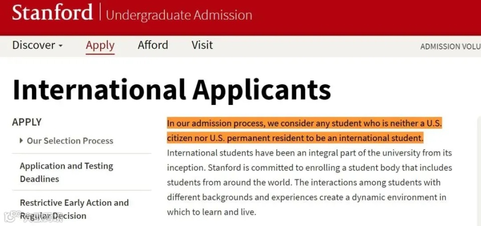 美国TOP100院校的主流观点认为,非美国公民或非美国绿卡持有者均为国际生。MIT、斯坦福大学、埃默里大学、达特茅斯学院等都在官网做了明确表态: