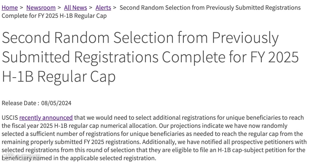 8月5日,美国移民局(USCIS)宣布,2025财年H-1B工作签证第二轮抽签,正式结束。本次抽签中签人数为13,607人。