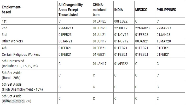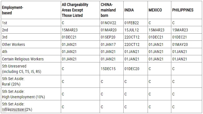 EB-5预留类别(乡村,高失业率地区以及基建项目):无排期