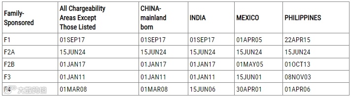 近日,美国国务院公布了2024年8月的绿卡移民排期。