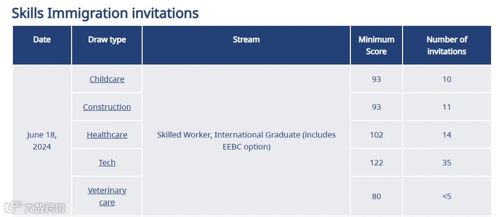 技术工人和国际留学生类别(包括EEBC)(针对Healthcare邀请):102分,共14份省提名邀请信