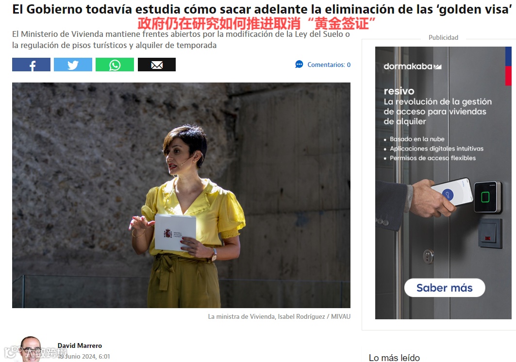 据西班牙6月18日新闻,西班牙执政党将继续推进取消“黄金签证”程序。临近西班牙议会时间(2024年7月初),西班牙住房部部长Isabel Rodríguez宣布对《土地法》改革、“黄金签证”的关停等政策议题开展公开讨论。这再次表明“黄金签证”的关停议题已经被提上现在政府日程。