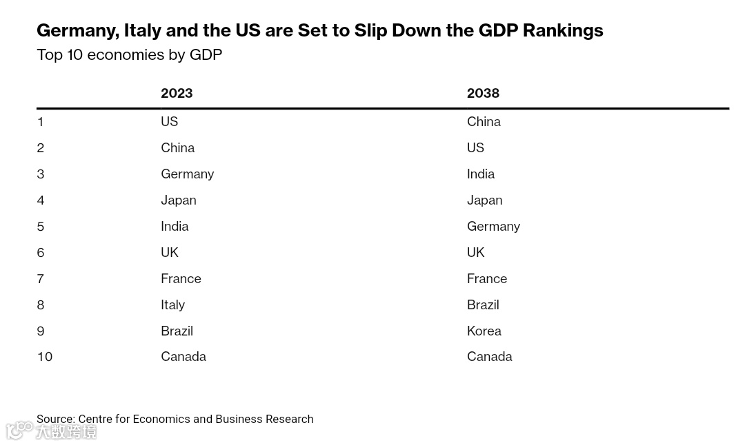自金融危机以来,英国经济一直被生产率提高乏力所困,近年来还出现劳动力供应问题。但根据CEBR的长期全球经济排名,英国经济增速将跑赢欧元区“四大”经济体——法国、德国、意大利和西班牙。