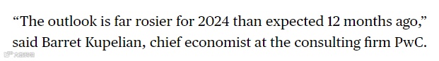 咨询公司普华永道(PwC)的首席经济学家Barret Kupelian表示:“2024年的前景比12个月前的预期要乐观得多。”