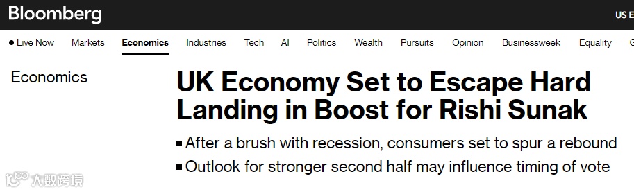 《彭博社》总结道,如果由经济来决定下届大选的结果(原则上不晚于2025年1月),从对未来一年的预测来看,保守党逆风翻盘的选举时机是等到2024年夏天,届时保守党政府可能会从中受益。