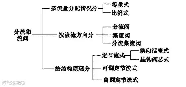 在流量控制阀中,还有一种叫做分流集流阀。与节流阀和调速阀不同,分流集流阀不具备调速功能,它控制的是流量的分配,适用于多个执行器需要同步的场合。分流集流阀有多种不同的形式,下图为分流集流阀的分类。