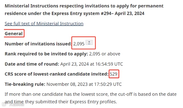 4月23日,加拿大联邦EE快速通道进行了常规类邀请,本次邀请分数为529分,比上一轮下降20分,共发出2,095份邀请。