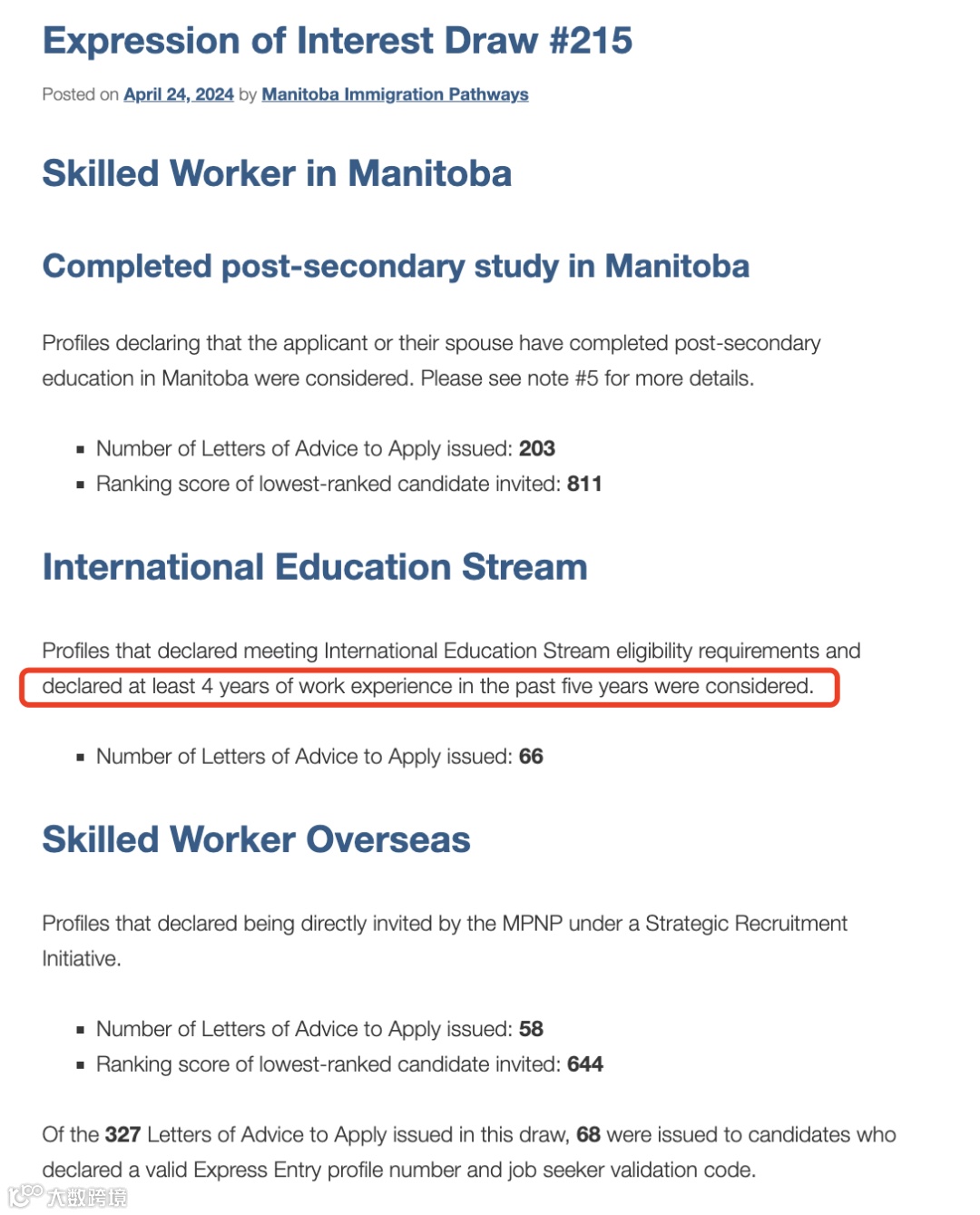 留学生专属渠道(IES):邀请66人,但仅邀请过去5年内有4年工作经验的申请人;