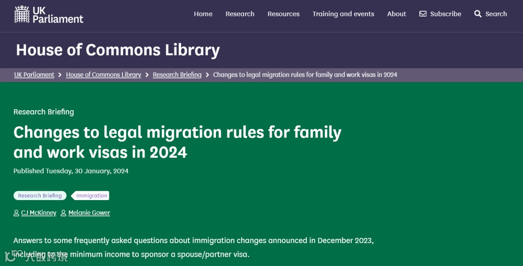 2024年1月30日,英国内政大臣詹姆斯·克莱弗利(James Cleverly)宣布重磅消息,于2023年12月提出的一系列签证收紧的措施,包括大幅提高工作签证、家庭签证的年薪门槛、取消对短缺职业清单里的20%工资折扣等政策,将从2024年3月起陆续生效。其中,英国工签的工资门槛提高至38,700英镑已于4月4日起正式执行。