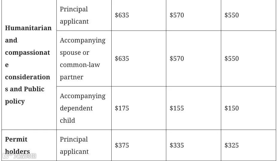 主申请人与配偶费用从850加元上调至950加元;