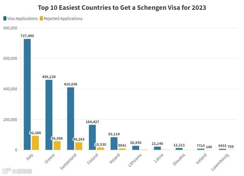 另外,根据Schengenvisainfo发布的2023年夏季十大最容易获得申根签证的国家数据可以推算出,冰岛是相对比较容易获得申根签证的国家,官方批准了98.1%的申请。
