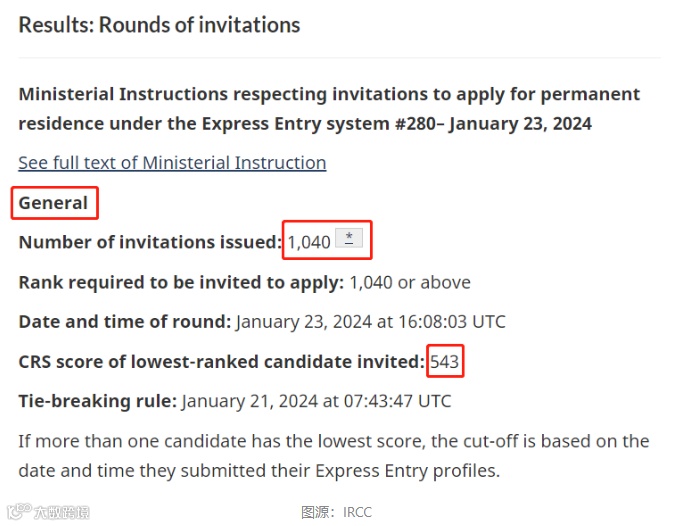 1月23日,加拿大联邦EE快速通道不区分抽选类别,向快速通道候选人发出了1,040份邀请,抽选分543分。本轮抽选面向CEC加拿大经验类、FSW联邦技术类、FST联邦技工类、PNP省提名项目所有类别候选人。