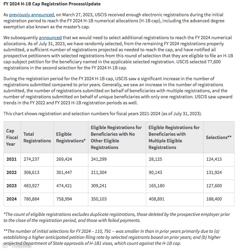 2023年第一轮H1B申请截止后,经美国劳工部查证,取消了一批公司的H-1B抽签资格。因此,美国移民局在2023年7月进行了第二轮“海底捞”。