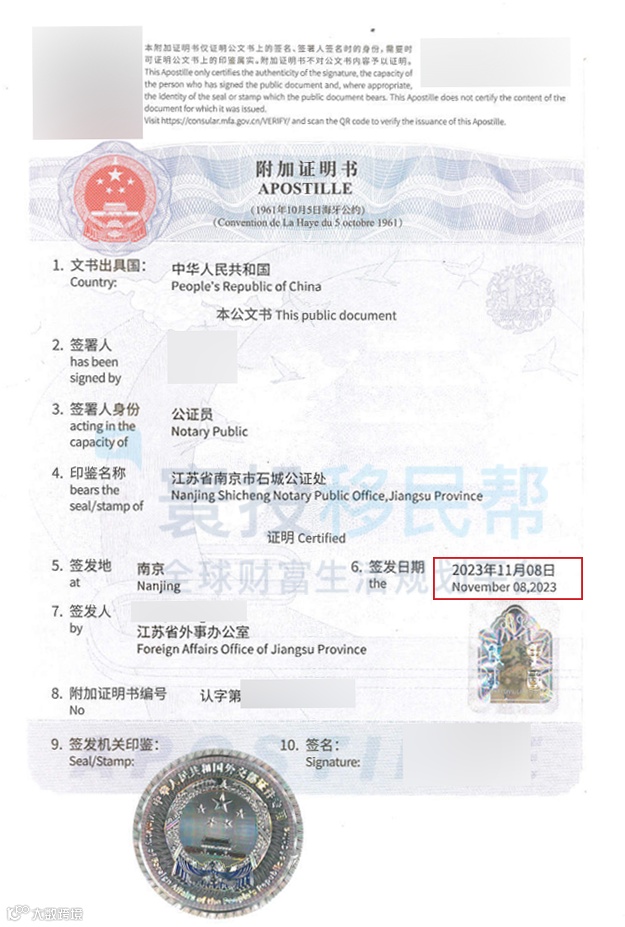 《海牙公约》生效第二天,移民帮就收到了新公证书~