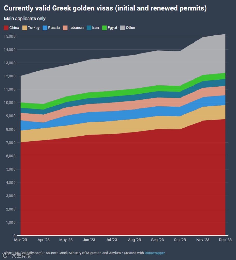 2023年,希腊永居迎来丰收的一年,申请量与上一年相比几乎翻倍,有10,214位申请人递交了希腊黄金签证申请,较2022年上涨约81%,签发永居卡数量增长101%。