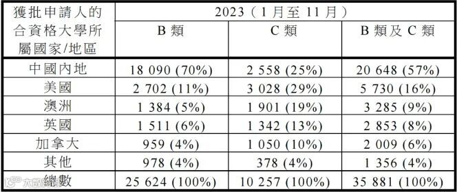 关于获批申请人的地区、毕业院校、年龄等数据,香港官方也已公示。