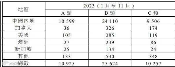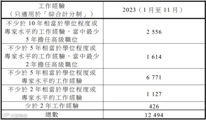 香港优才获批的主要申请人多数来自内地,综合计分制12,313人,成就计分制23人。